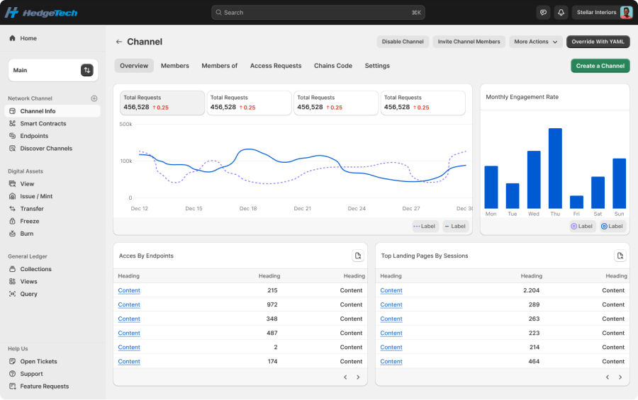 Create customisable dashboards to visualise KPIs and share insights across teams through HedgeTechDB channels.
